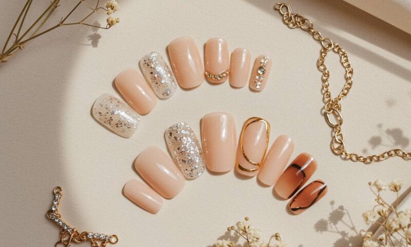 デザインにアクセントを加えるなら、「メタリックライン」や「ホログラムパウダー」の部分使いもおすすめです。全体に使うのではなく、フレンチネイルの先端やアクセントネイルの一部に取り入れることで、洗練された印象になります。「イニスフリー」や「エテュセ」のネイルチップコレクションには、こうした繊細なデザインが多く含まれています。