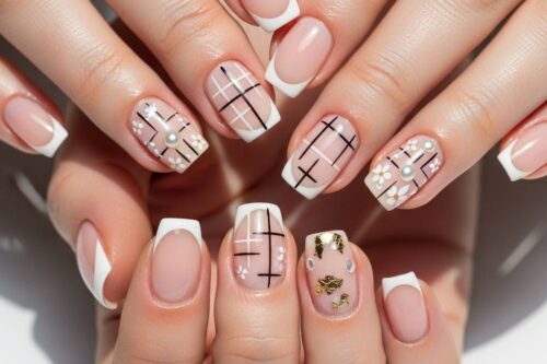 まず、フレンチネイルといえば、爪先にホワイトのラインを入れるクラシックスタイルが定番ですが、今年はちょっとひとひねりしたデザインが注目されています。例えば、ホワイトの代わりに、秋冬らしい深みのあるボルドーやモスグリーンを使ったカラーリングはいかがでしょうか?落ち着いた色味が指先を上品に見せてくれます。